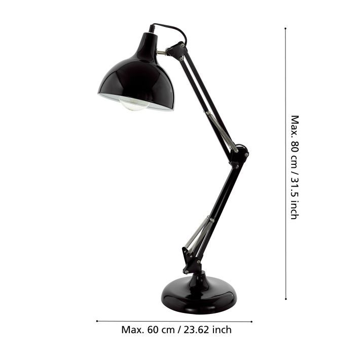 Eglo Borgillio Φωτιστικό Γραφείου με Σπαστό Βραχίονα σε Μαύρο Χρώμα 94697