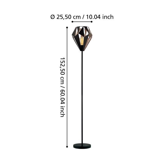Eglo Carlton 1 Vintage Φωτιστικό Δαπέδου Υ152.5xΜ25εκ. με Ντουί για Λαμπτήρα E27 σε Μαύρο Χρώμα 49994