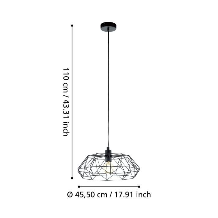 Eglo Carlton Vintage Κρεμαστό Φωτιστικό Μονόφωτο Πλέγμα με Ντουί E27 σε Μαύρο Χρώμα 49487