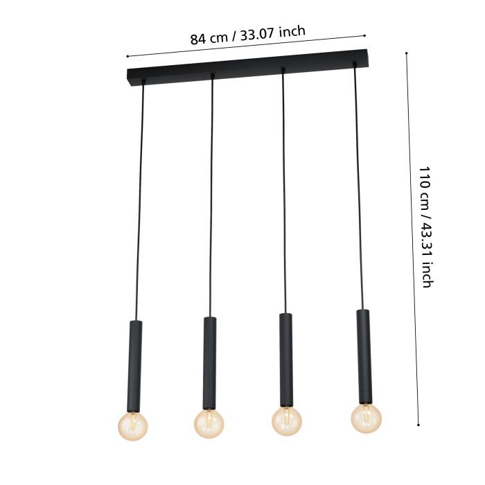 Πολύφωτο κρεμαστό φωτιστικό από την εταιρεία Eglo σε μαύρο χρώμα, με υποδοχές για 4 λαμπτήρες και ντουί E27. Διαθέτει vintage σχεδιασμό που προσδίδει στυλ και χαρακτήρα στον χώρο σας, ενώ ταυτόχρονα δημιουργεί μια ατμόσφαιρα που συνδυάζει την αισθητική του παρελθόντος με τον σύγχρονο σχεδιασμό. Είναι κατασκευασμένο από μέταλλο, ένα υλικό δημοφιλή στα κρεμαστά φωτιστικά οροφής, καθώς πέρα από τη μοντέρνα νότα που προσφέρει, είναι ιδιαίτερα ανθεκτικό στον χρόνο. Καθαρίζεται εύκολα με ένα πανί.
