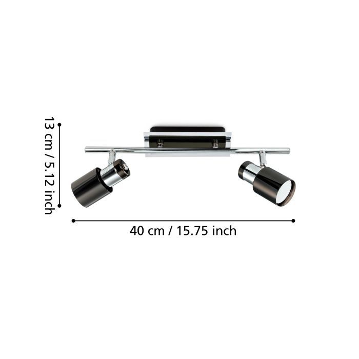 Διπλό σποτ με ντουί GU10 της Eglo σε μαύρο χρώμα. Διαθέτει κομψό σχεδιασμό και δημιουργεί ένα ζεστό περιβάλλον στον χώρος σας.