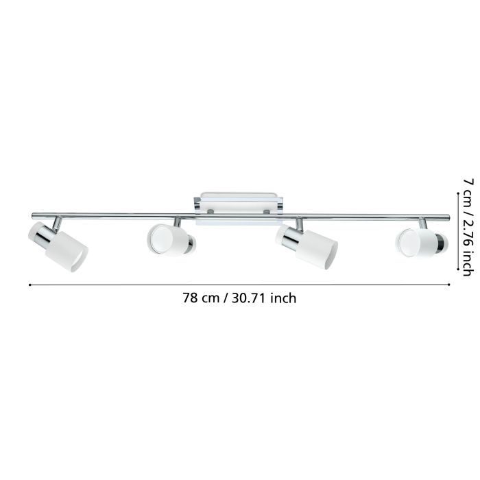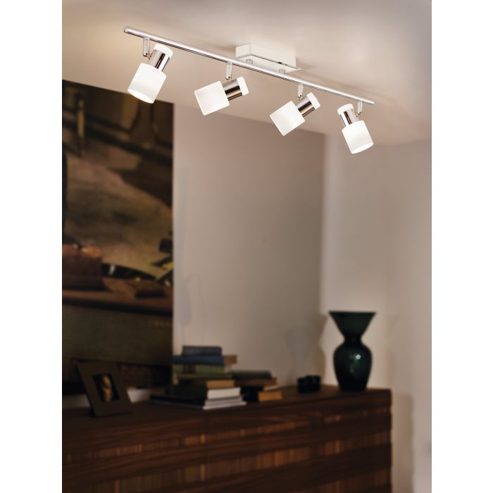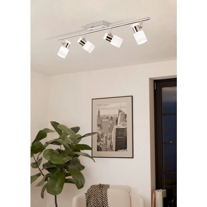 Σποτ με 4 φώτα με ντουί GU10 της Eglo σε λευκό χρώμα. Διαθέτει κομψό σχεδιασμό και δημιουργεί ένα ζεστό περιβάλλον στον χώρος σας.