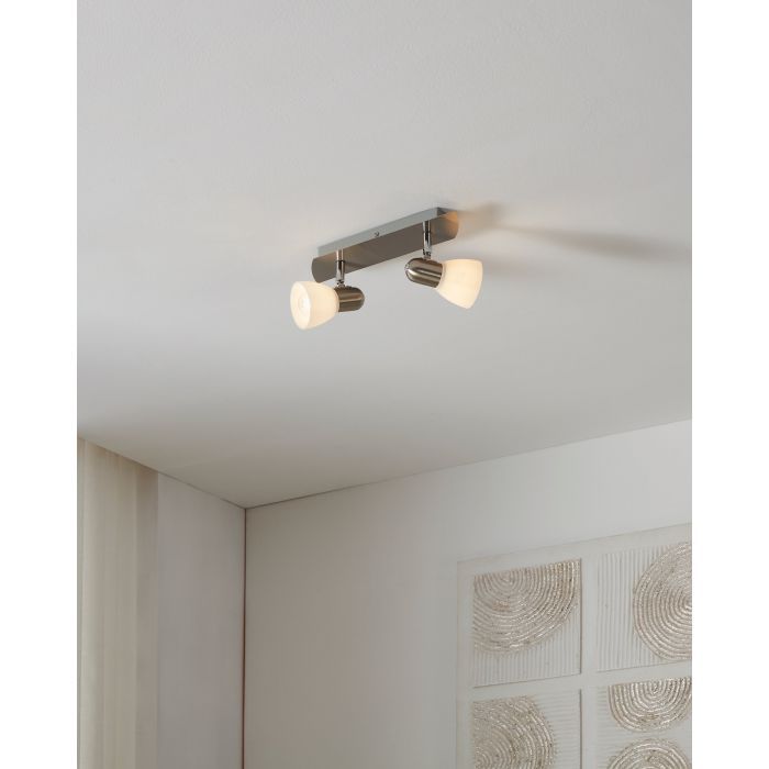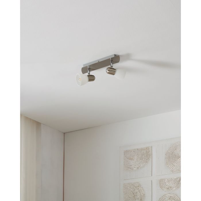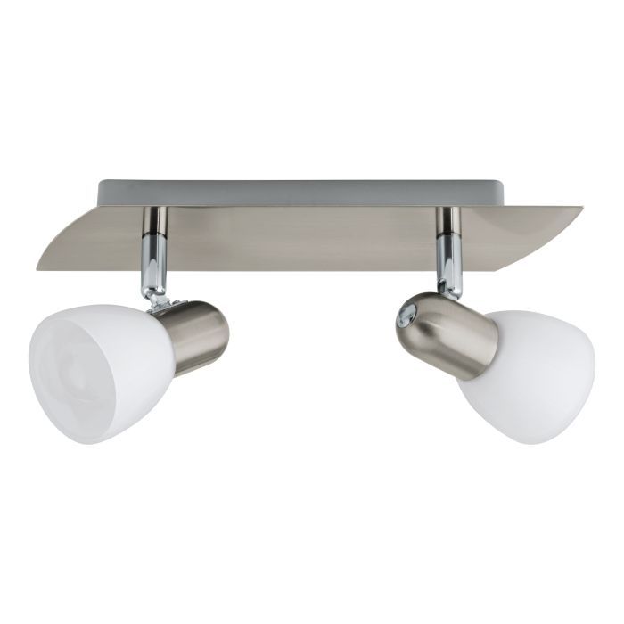 Διπλό σποτ με ντουί E14 της Eglo σε ασημί χρώμα. Διαθέτει κομψό σχεδιασμό και δημιουργεί ένα ζεστό περιβάλλον στον χώρος σας.
