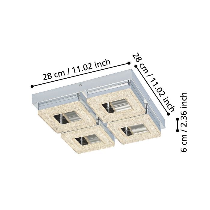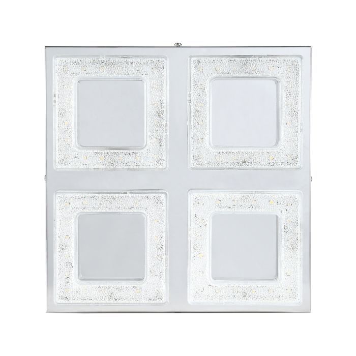 Μοντέρνα πλαφονιέρα οροφής της Eglo σε ασημί χρώμα, από μέταλλο. Διαθέτει ενσωματωμένο LED, το οποίο εκπέμπει θερμό λευκό φως που αποδίδεται στην κλίμακα Kelvin με τιμές από 2400Κ έως 3800Κ. Αυτοί οι τόνοι του λευκού είναι πιο κίτρινοι σε σχέση με το φυσικό φως.
