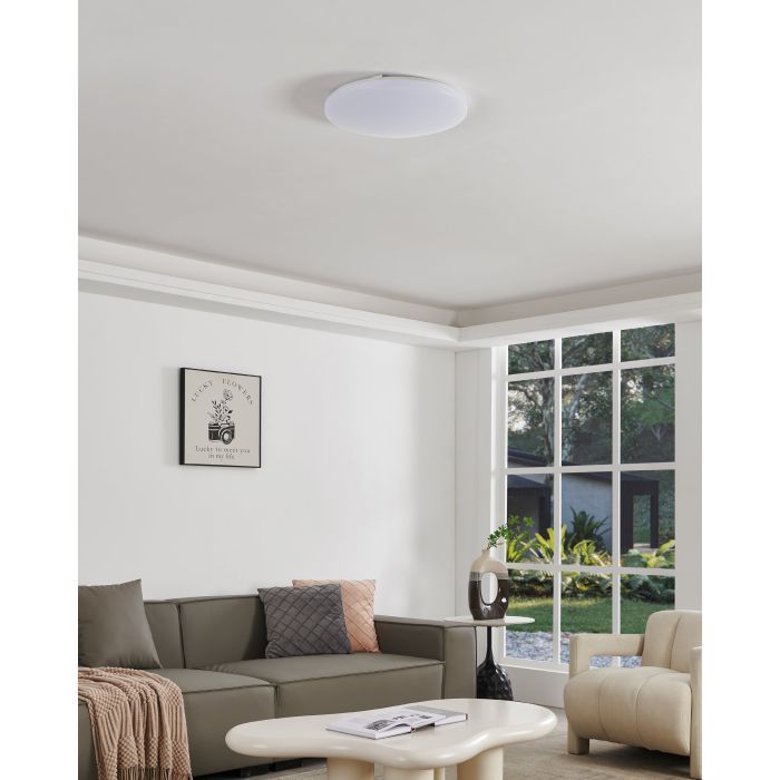 LED panel εξωτερικής τοποθέτησης της Eglo, στρογγυλό, με ισχύ 33.5W. Εκπέμπει θερμό λευκό φως, το οποίο αποδίδεται στην κλίμακα Kelvin με τιμές από 2400Κ έως 3800Κ. Οι τόνοι του θερμού λευκού είναι πιο κίτρινοι σε σχέση με το φυσικό φως.
