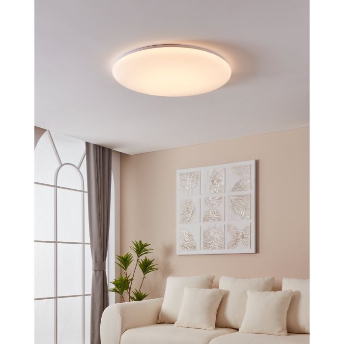 LED panel εξωτερικής τοποθέτησης της Eglo, στρογγυλό, με ισχύ 60W. Η απόχρωση του φωτός του ρυθμίζεται ανάμεσα σε θερμό λευκό, φυσικό λευκό και ψυχρό λευκό. Έτσι, μπορείτε να εναλλάσσετε τις διαβαθμίσεις όποτε επιθυμείτε.