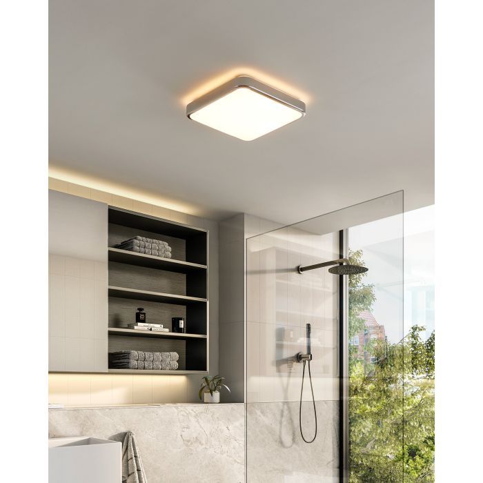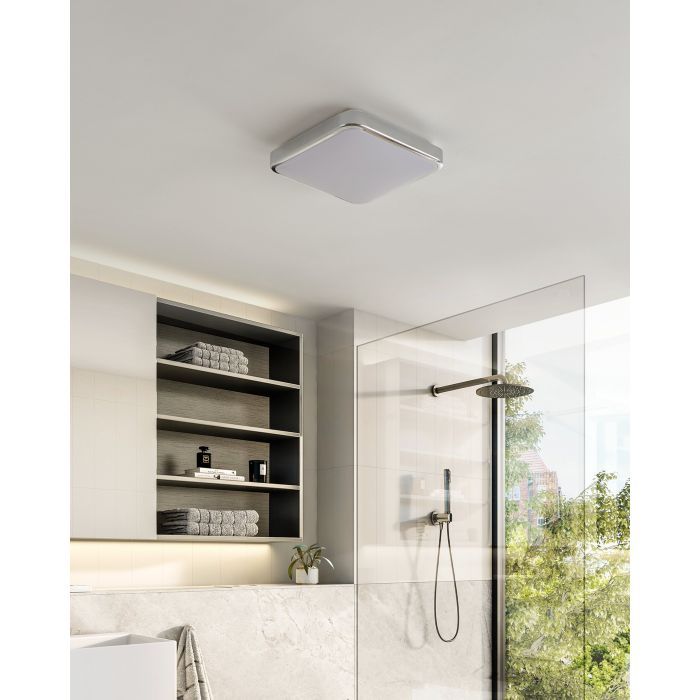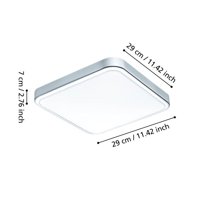 LED panel εξωτερικής τοποθέτησης της Eglo, τετράγωνο, με ισχύ 16W. Εκπέμπει θερμό λευκό φως, το οποίο αποδίδεται στην κλίμακα Kelvin με τιμές από 2400Κ έως 3800Κ. Οι τόνοι του θερμού λευκού είναι πιο κίτρινοι σε σχέση με το φυσικό φως.