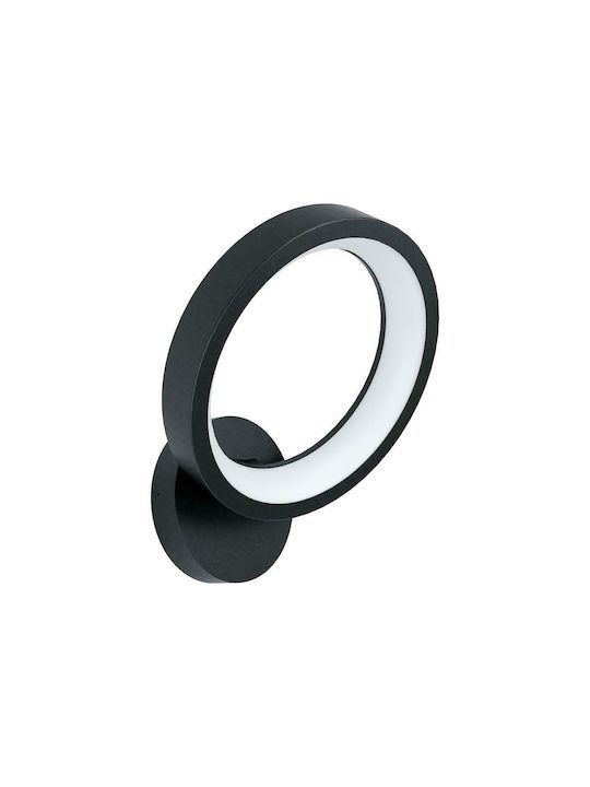 Μοντέρνο φωτιστικό τοίχου της Eglo σε μαύρο χρώμα, με πλάτος 20εκ. Το φως του ενσωματωμένου LED που διαθέτει μπορεί να πάρει διάφορες αποχρώσεις συνδυάζοντας τα χρώματα κόκκινο, πράσινο, μπλε και λευκό.