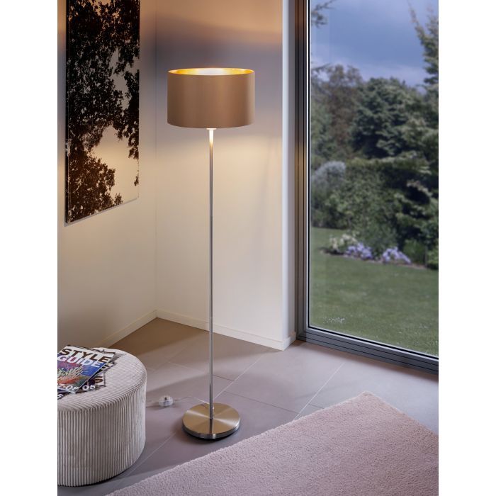 Φωτιστικό δαπέδου Maserlo της Eglo σε καφέ χρώμα, με ντουί για λαμπτήρες E27.