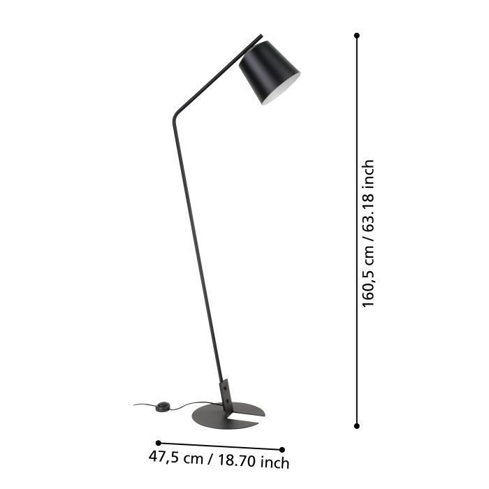 Φωτιστικό δαπέδου Oneda της Eglo σε μαύρο χρώμα, με ντουί για λαμπτήρες E27.