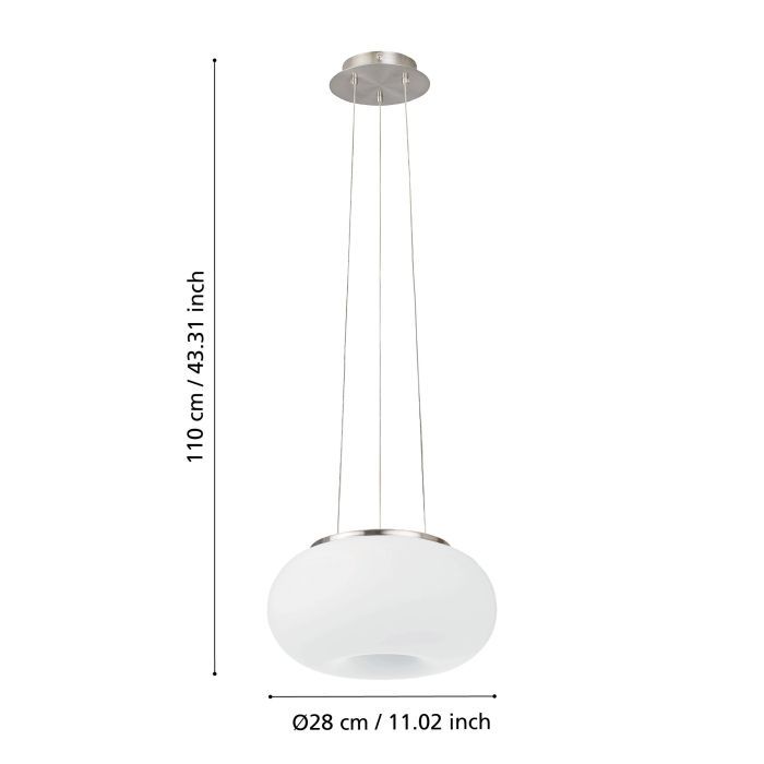 Μονόφωτο κρεμαστό φωτιστικό από την εταιρεία Eglo σε λευκό χρώμα, με υποδοχή για έναν λαμπτήρα και ντουί E27. Είναι κατασκευασμένο από γυαλί, ένα υλικό ιδιαίτερα ελκυστικό για τη διακόσμηση και τον φωτισμό του χώρου σας. Το γυαλί επιτρέπει τη διάχυση του φωτός με ομοιόμορφο τρόπο, δημιουργώντας μια ισορροπημένη φωτεινότητα στον χώρο. Τα κρεμαστά φωτιστικά οροφής από γυαλί είναι εύκολο να καθαριστούν και να συντηρηθούν, απλά χρησιμοποιώντας ένα πανί για να διατηρήσετε τη λάμψη τους.