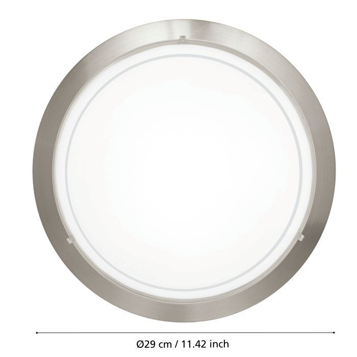 Κλασική πλαφονιέρα οροφής της Eglo σε ασημί χρώμα, από μέταλλο. Διαθέτει ντουί για λαμπτήρες E27.