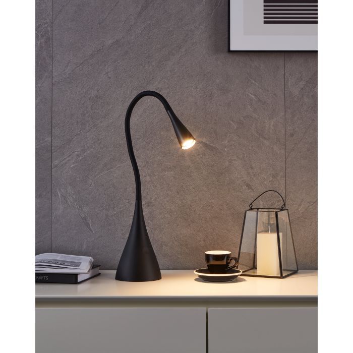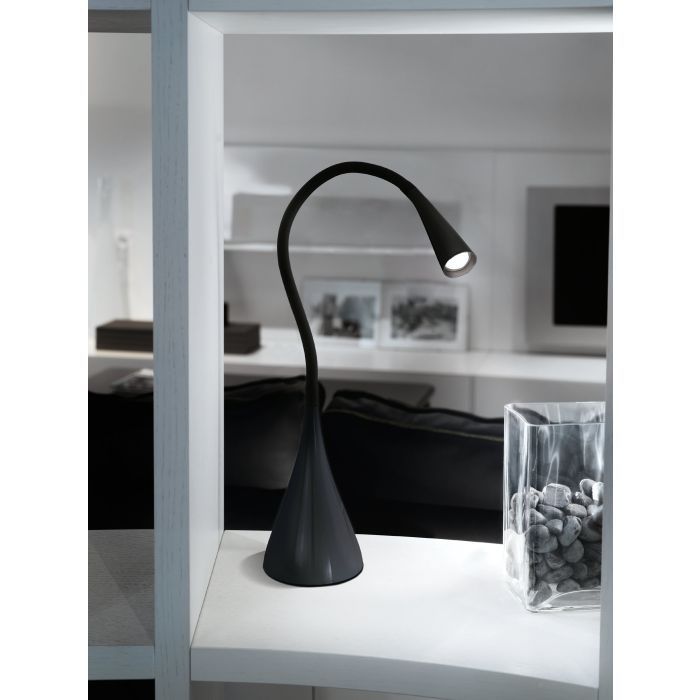 Φωτιστικό γραφείου της Eglo με ενσωματωμένο LED και εύκαμπτο βραχίονα, σε μαύρο χρώμα.
