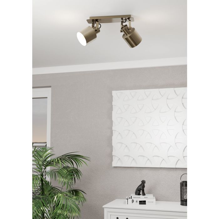 Διπλό σποτ με ντουί E27 της Eglo σε χρυσό χρώμα. Διαθέτει κομψό σχεδιασμό και δημιουργεί ένα ζεστό περιβάλλον στον χώρος σας.