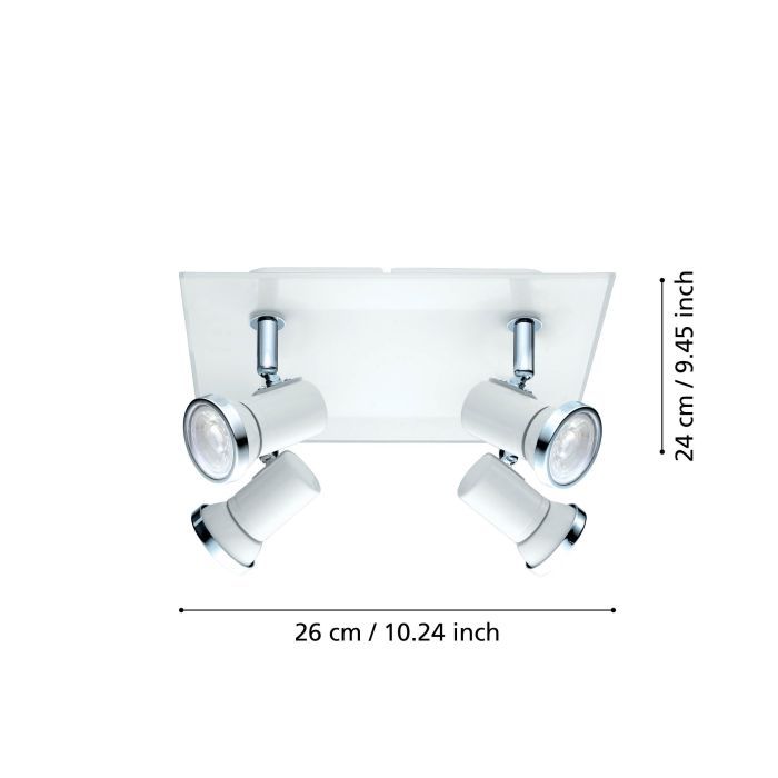 Σποτ με 4 φώτα με ντουί GU10 της Eglo σε λευκό χρώμα. Διαθέτει κομψό σχεδιασμό και δημιουργεί ένα ζεστό περιβάλλον στον χώρος σας.