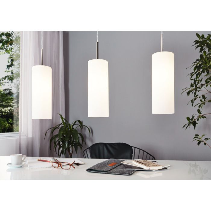 Τρίφωτο κρεμαστό φωτιστικό ράγα από την εταιρεία Eglo σε λευκό χρώμα, με υποδοχές για 3 λαμπτήρες και ντουί E27. Είναι κατασκευασμένο από γυαλί, ένα υλικό ιδιαίτερα ελκυστικό για τη διακόσμηση και τον φωτισμό του χώρου σας. Το γυαλί επιτρέπει τη διάχυση του φωτός με ομοιόμορφο τρόπο, δημιουργώντας μια ισορροπημένη φωτεινότητα στον χώρο. Τα κρεμαστά φωτιστικά οροφής από γυαλί είναι εύκολο να καθαριστούν και να συντηρηθούν, απλά χρησιμοποιώντας ένα πανί για να διατηρήσετε τη λάμψη τους.