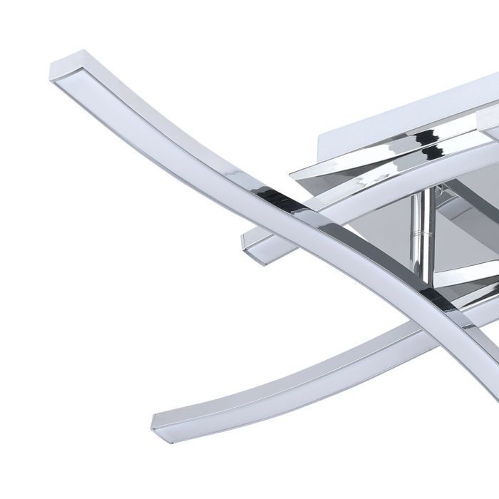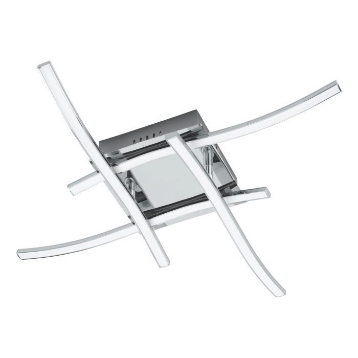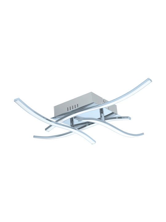 Μοντέρνα πλαφονιέρα οροφής της Eglo σε ασημί χρώμα, από μέταλλο. Διαθέτει ενσωματωμένο LED, το οποίο εκπέμπει θερμό λευκό φως που αποδίδεται στην κλίμακα Kelvin με τιμές από 2400Κ έως 3800Κ. Αυτοί οι τόνοι του λευκού είναι πιο κίτρινοι σε σχέση με το φυσικό φως.