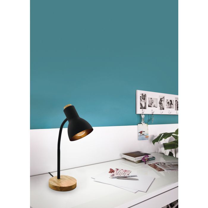 Φωτιστικό γραφείου της Eglo με εύκαμπτο βραχίονα, σε μαύρο χρώμα.