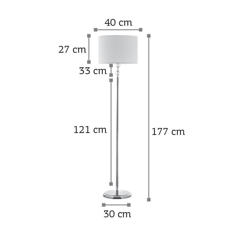 InLight Επιδαπέδιο φωτιστικό από χρώμιο μέταλλο κρύσταλλο και υφασμάτινο καπέλο 1XE27 D:177cm 45360-Χρώμιο