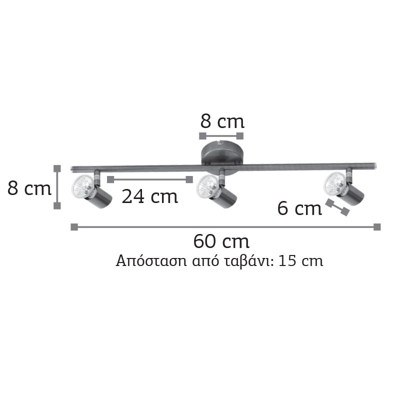 InLight Επιτοίχιο σποτ από μέταλλο σε οξυντέ απόχρωση 3XGU10 D:60cm 9076-3Φ-Οξυντέ