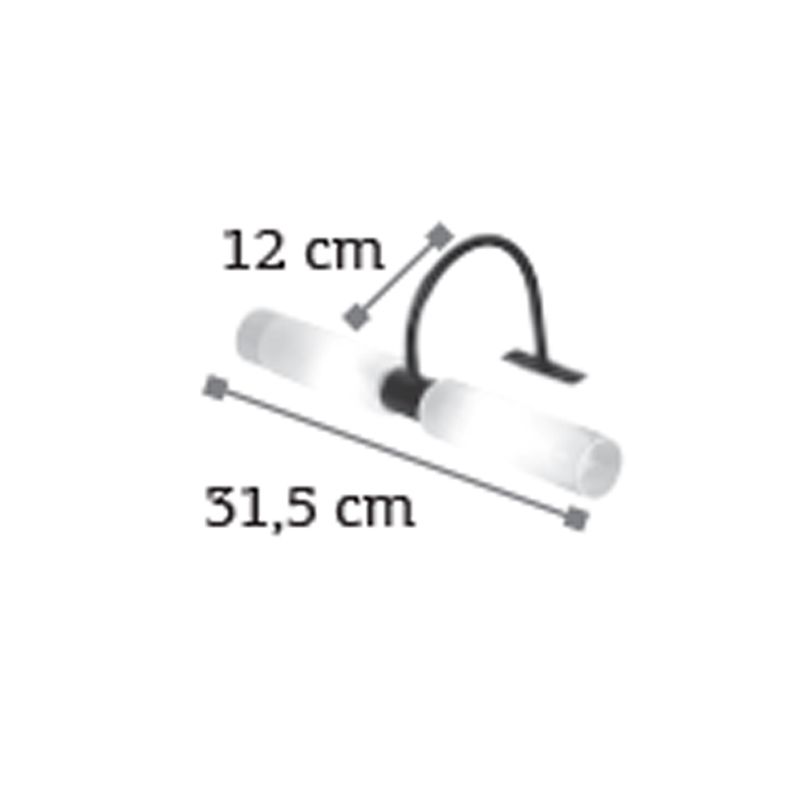 Πρόκειται για ένα επιτοίχιο φωτιστικό κατασκευασμένο από μέταλλο σε μαύρη απόχρωση με δύο λαμπτήρες που καλύπτονται από κυλινδρικό γυαλί αμμοβολής με διάφανες λεπτομέρειες. Είναι η ιδανική επιλογή για φωτισμό μπάνιου τοποθετημένο πάνω από τον καθρέπτη και όταν υπάρχει έλλειψη χώρου για την βάση του. Το φως διαχέεται ομοιόμορφα. Πρόκειται για ένα επιτοίχιο φωτιστικό κατασκευασμένο από μέταλλο σε μαύρη απόχρωση με δύο λαμπτήρες που καλύπτονται από κυλινδρικό γυαλί αμμοβολής με διάφανες λεπτομέρειες. Είναι η ιδανική επιλογή για φωτισμό μπάνιου τοποθετημένο πάνω από τον καθρέπτη και όταν υπάρχει έλλειψη χώρου για την βάση του. Το φως διαχέεται ομοιόμορφα.