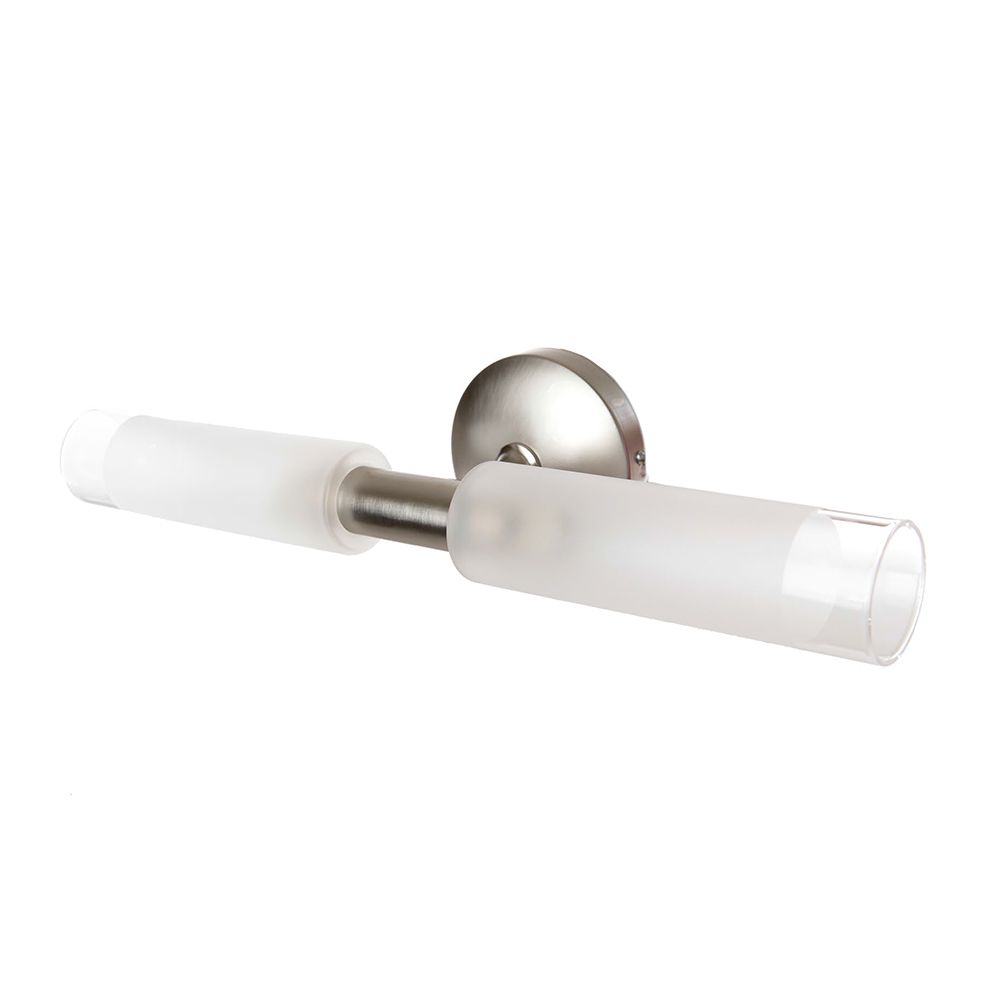 Πρόκειται για ένα επιτοίχιο φωτιστικό κατασκευασμένο από μέταλλο σε νίκελ ματ απόχρωση με δύο λαμπτήρες που καλύπτονται από κυλινδρικό γυαλί αμμοβολής με διάφανες λεπτομέρειες. Είναι η ιδανική επιλογή για φωτισμό μπάνιου τοποθετημένο πάνω από τον καθρέπτη αφού το φως διαχέεται ομοιόμορφα. Πρόκειται για ένα επιτοίχιο φωτιστικό κατασκευασμένο από μέταλλο σε νίκελ ματ απόχρωση με δύο λαμπτήρες που καλύπτονται από κυλινδρικό γυαλί αμμοβολής με διάφανες λεπτομέρειες. Είναι η ιδανική επιλογή για φωτισμό μπάνιου τοποθετημένο πάνω από τον καθρέπτη αφού το φως διαχέεται ομοιόμορφα.