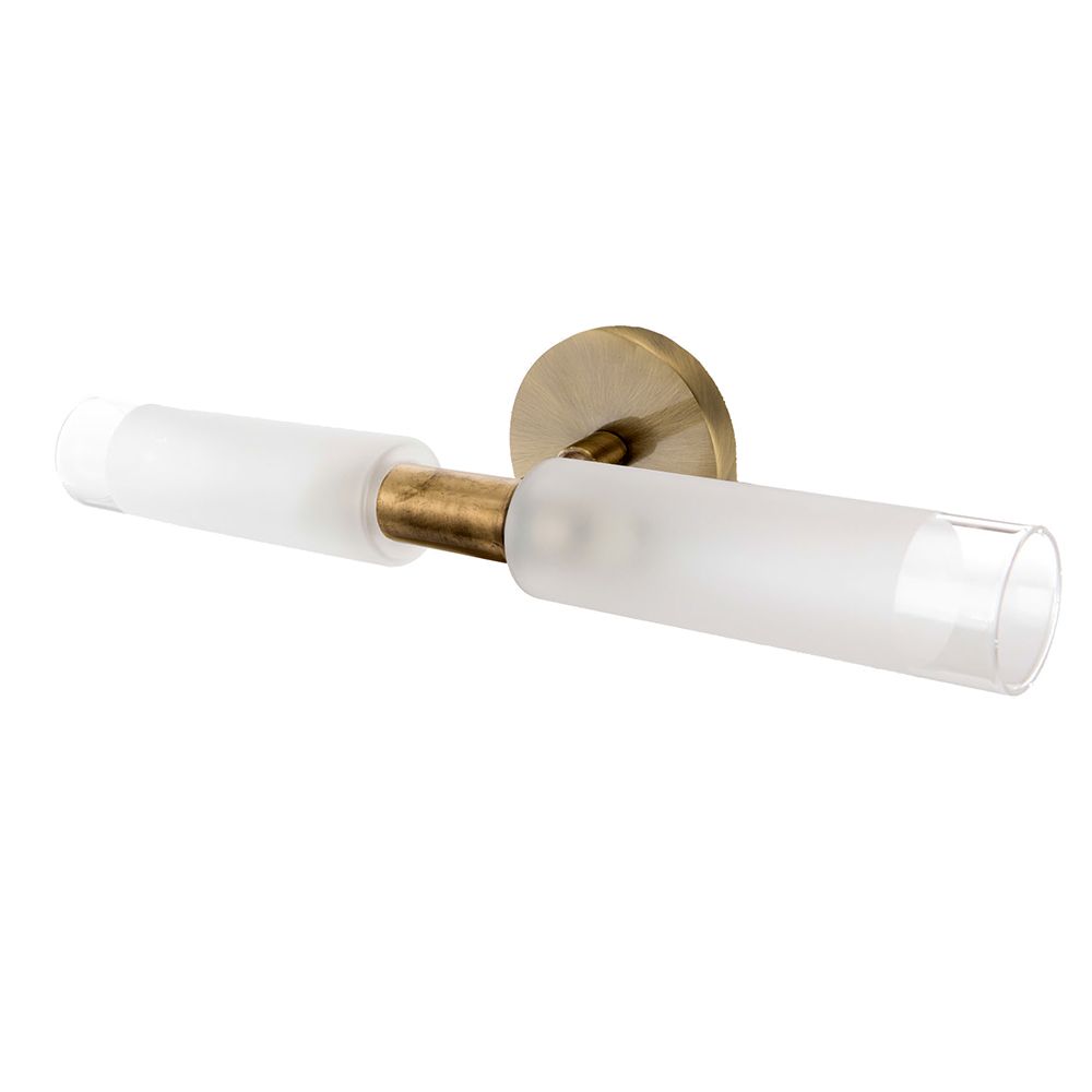 Πρόκειται για ένα επιτοίχιο φωτιστικό κατασκευασμένο από μέταλλο σε οξυντέ απόχρωση με δύο λαμπτήρες που καλύπτονται από κυλινδρικό γυαλί αμμοβολής με διάφανες λεπτομέρειες. Είναι η ιδανική επιλογή για φωτισμό μπάνιου τοποθετημένο πάνω από τον καθρέπτη αφού το φως διαχέεται ομοιόμορφα. Πρόκειται για ένα επιτοίχιο φωτιστικό κατασκευασμένο από μέταλλο σε οξυντέ απόχρωση με δύο λαμπτήρες που καλύπτονται από κυλινδρικό γυαλί αμμοβολής με διάφανες λεπτομέρειες. Είναι η ιδανική επιλογή για φωτισμό μπάνιου τοποθετημένο πάνω από τον καθρέπτη αφού το φως διαχέεται ομοιόμορφα.