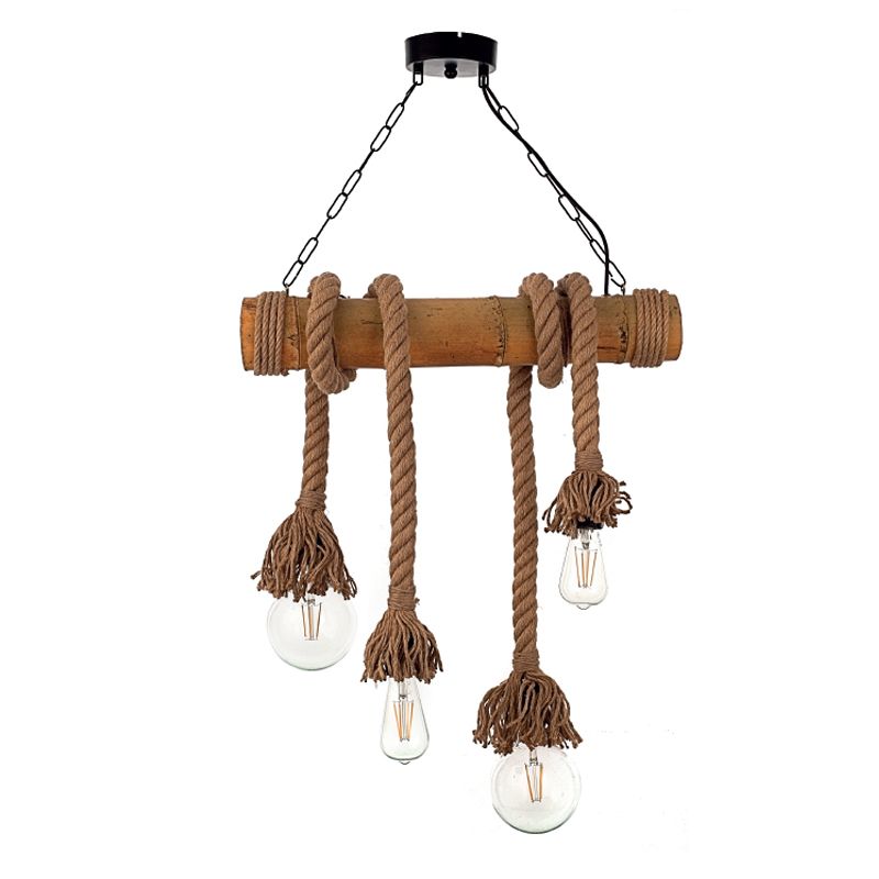 InLight Κρεμαστό φωτιστικό από καφέ σχοινί και μπαμπού 4XE27 D:60cm 5307-4