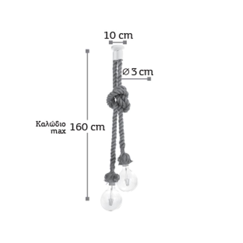 - InLight Κρεμαστό φωτιστικό από καφέ σχοινί 2XE27 D:160cm 4381-2-WH Ειδική Τιμή 42,00 € Κανονική τιμή 52,08 €