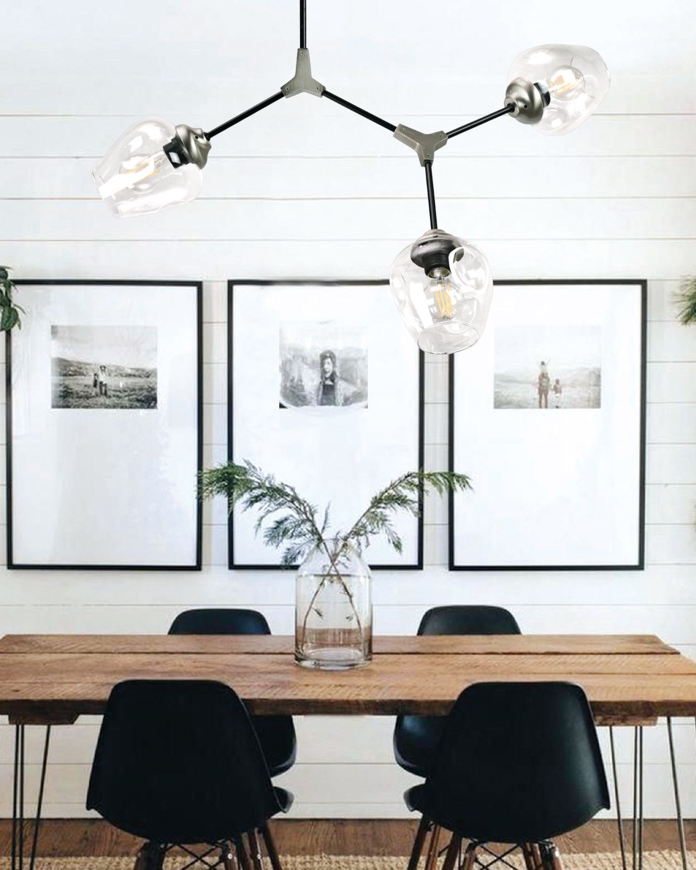 InLight Κρεμαστό φωτιστικό από μαύρο μέταλλο και διάφανο γυαλί 3XE27 D:70cm 6129-3-GL