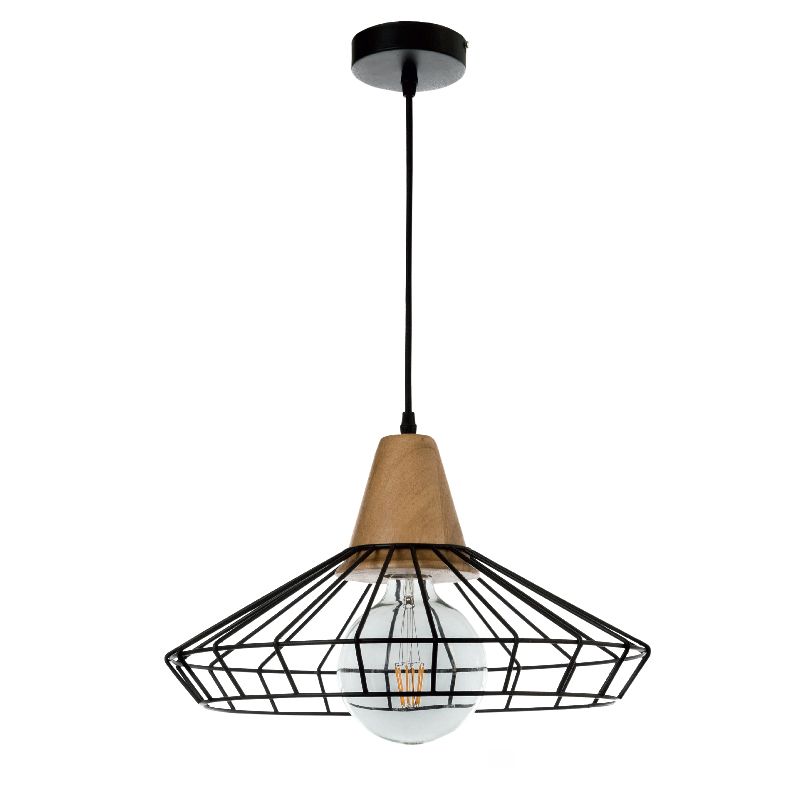 InLight Κρεμαστό φωτιστικό από μαύρο μέταλλο και ξύλο 1XE27 D:40cm 4389