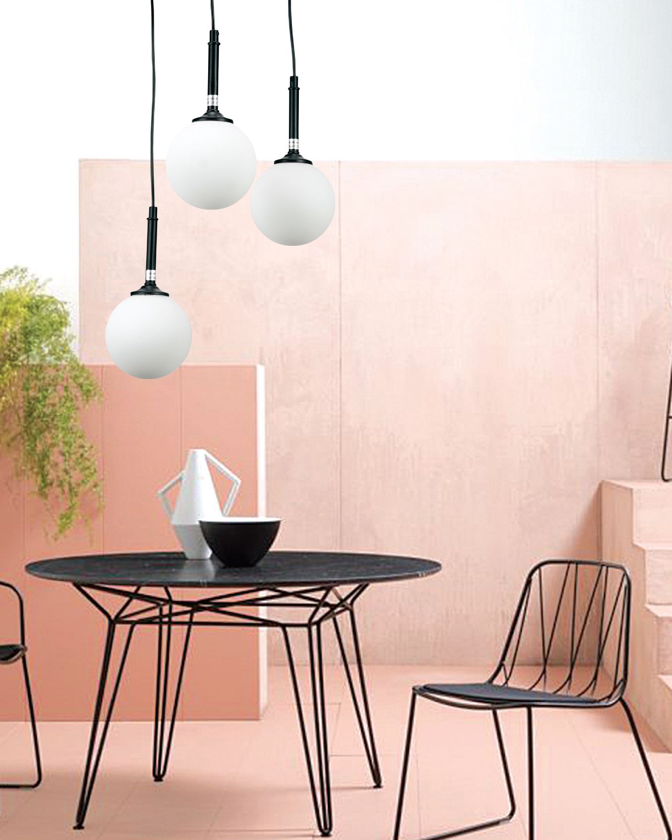 InLight Κρεμαστό φωτιστικό από χρυσαφί μέταλλο και λευκή οπαλίνα 3XG9 D:30cm 4016-3-ROSETTE