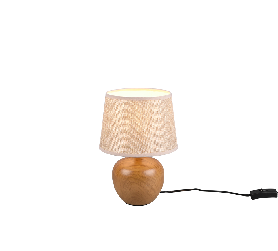 The right place for the elegant LUXOR table lamp is quickly found, whether on the sideboard, in the hallway or in the bedroom as an accent light, the modern lamp is a real eye-catcher in any living area. The wood-look ceramic base creates a pleasant ambience and harmonises perfectly with the beige fabric shade. For energy-saving lighting, it is recommended to use an LED illuminant. These are an optimal alternative to conventional halogen lamps and stand for a high quality of light and energy savings of up to 80%. In addition, LED lamps help you benefit from a long service life, low heat generation and at the same time protect the environment.
