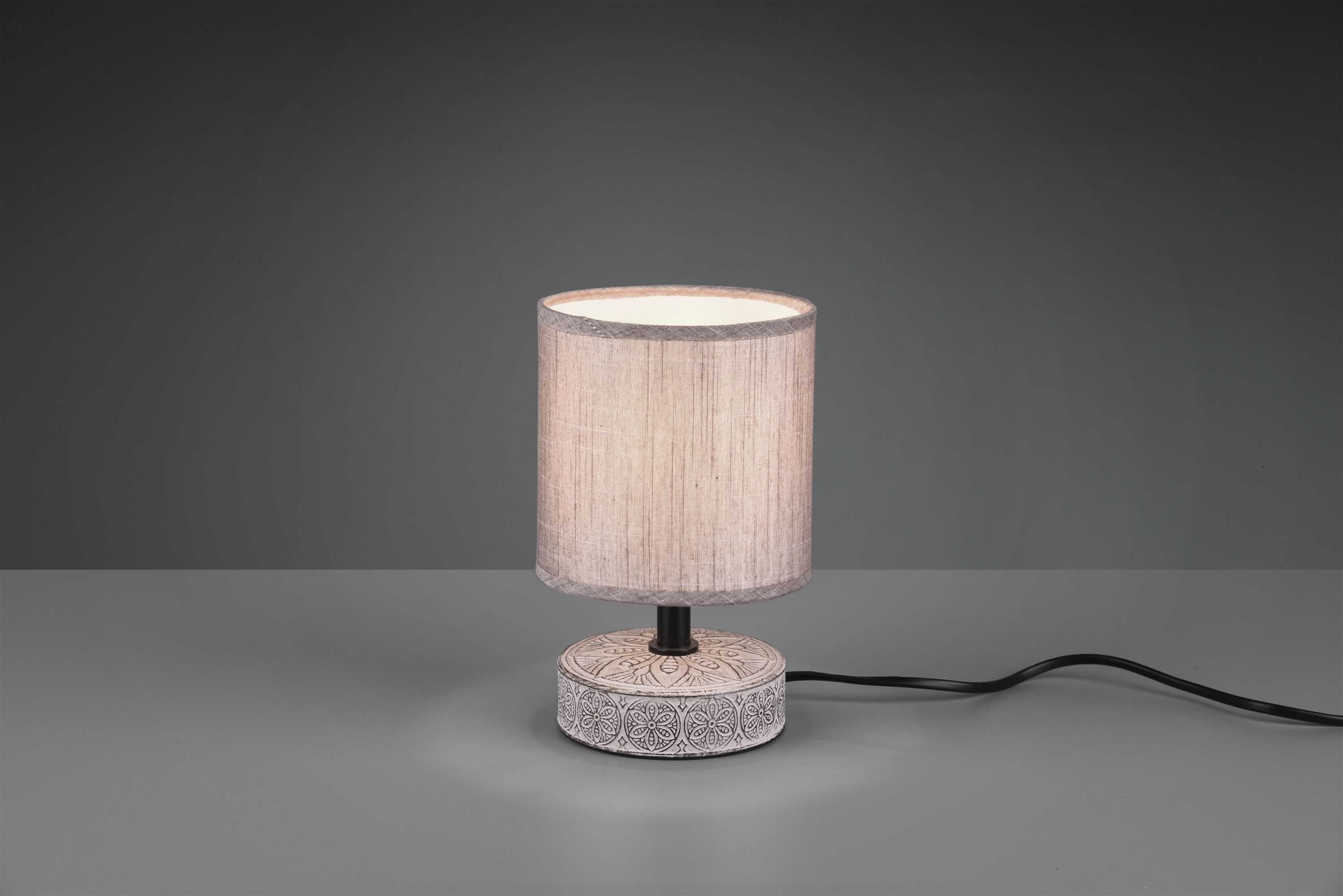 The MARIE table lamp creates a cosy and inviting ambience with its combination of fabric and ceramic. Whether as a bedside lamp in the bedroom, on a chest of drawers or on a side table in the living room, the vintage design makes the lamp an absolute eye-catcher. The light is equipped with a cord switch, making it easy to switch on and off. The light brown design creates an inviting atmosphere and can be combined with other colours. For energy-saving lighting, it is recommended to use an LED illuminant. These are an optimal alternative to conventional halogen lamps and stand for a high quality of light and energy savings of up to 80%. In addition, LED lamps help you benefit from a long service life, low heat generation and at the same time protect the environment.