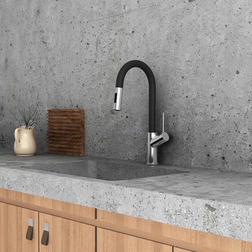 Μπαταρία κουζίνας με αποσπώμενο, συρόμενο ντουζ δύο ροών και με ρουξούνι μαύρο, ορειχάλκινο ματ. Η Edge φέρει την υπογραφή της εταιρείας Armando Vicario και χαρακτηρίζεται από εργονομικό design υψηλών σχεδιαστικών προδιαγραφών και κορυφαία κατασκευαστική ποιότητα, που προσφέρει μεγάλη ευκολία στη χρήση.