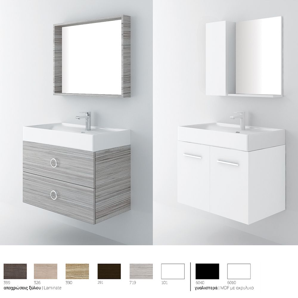 Orabella Touch 81 με δύο Συρτάρια - Κρεμαστό Έπιπλο Μπάνιου με πορσελάνινο νιπτήρα Tecla και καθρέπτη ντουλάπι F60167-70152-70105-60167