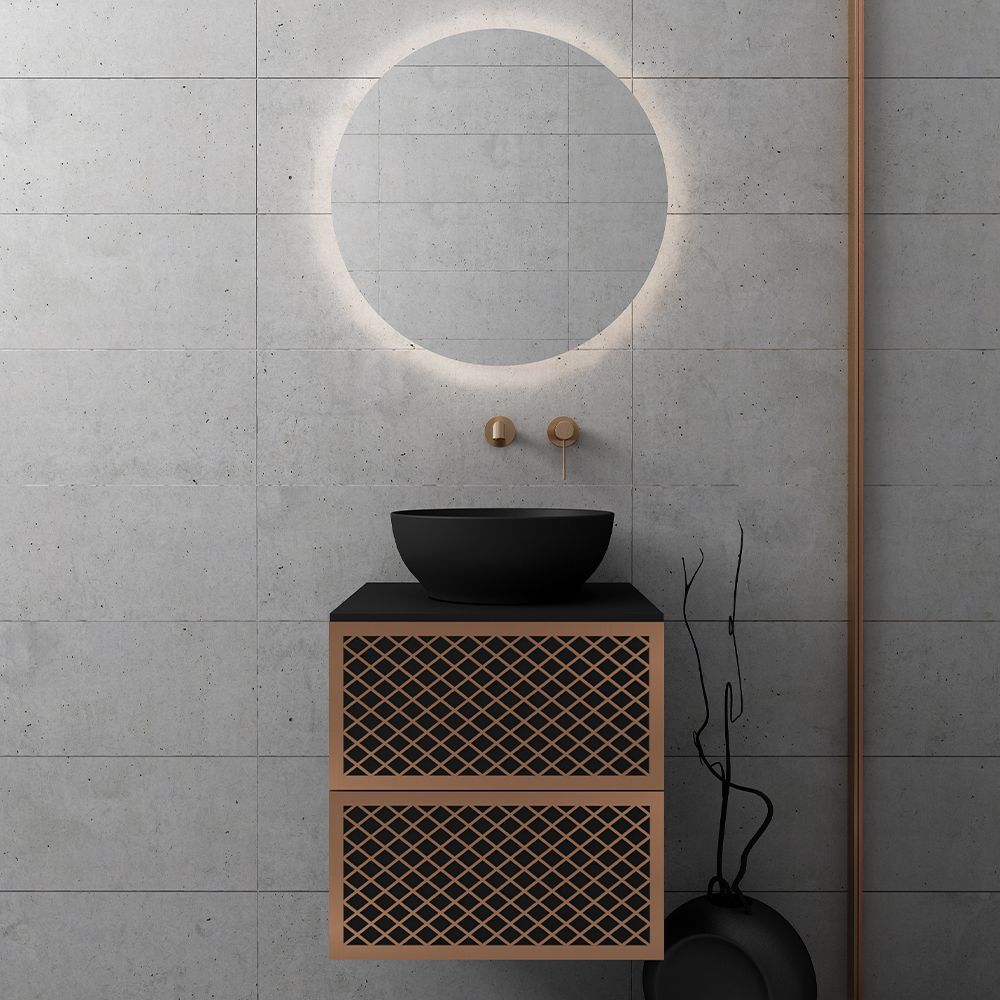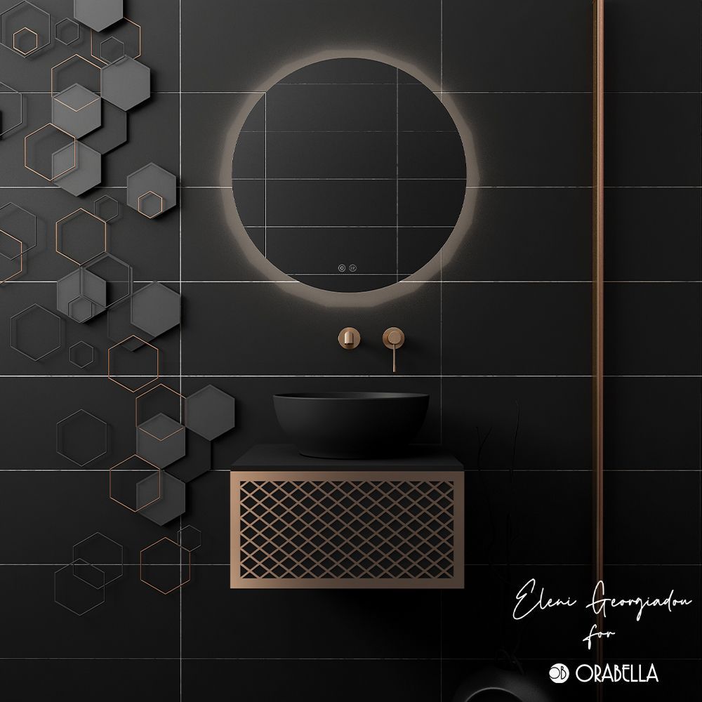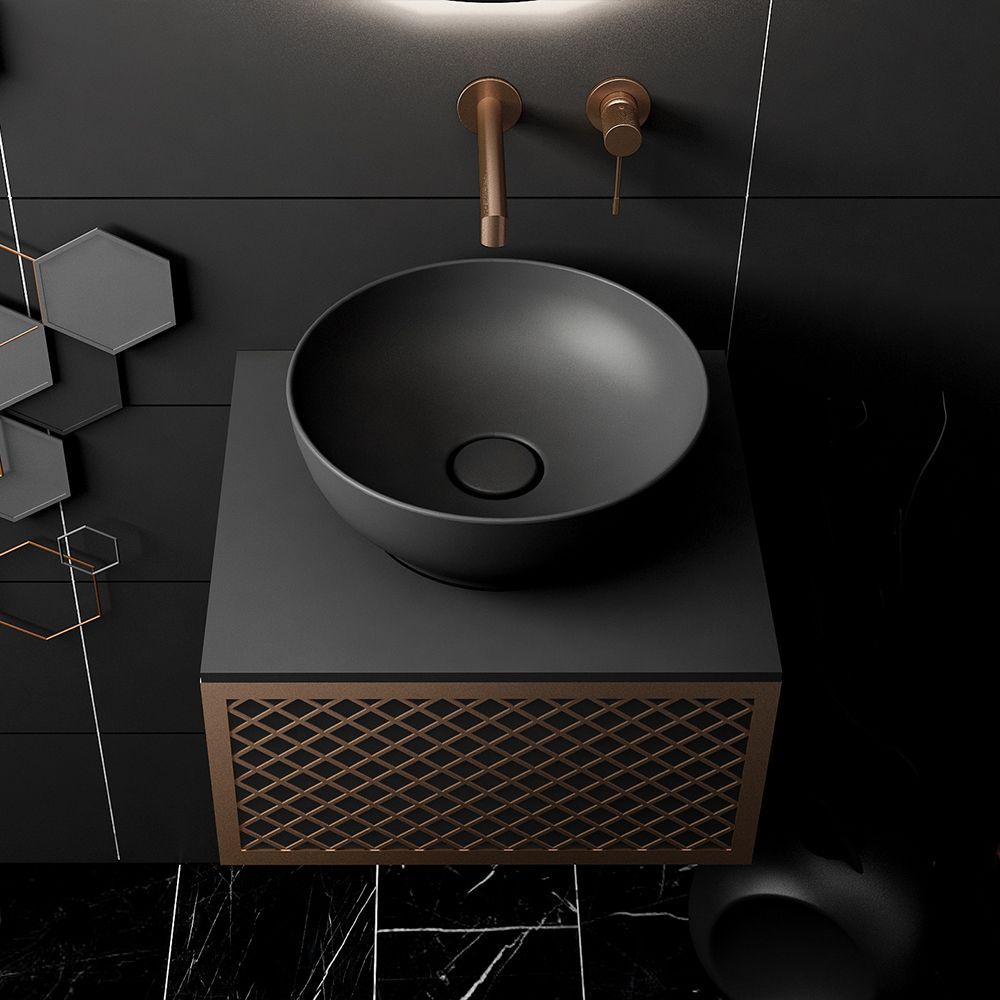 Orabella Wire 50 Μαύρο/ Ροζ Χρυσό Προφίλ - Κρεμαστό Έπιπλο Μπάνιου για επικαθήμενο νιπτήρα με διπλό αποθηκευτικό χώρο F70173-70182