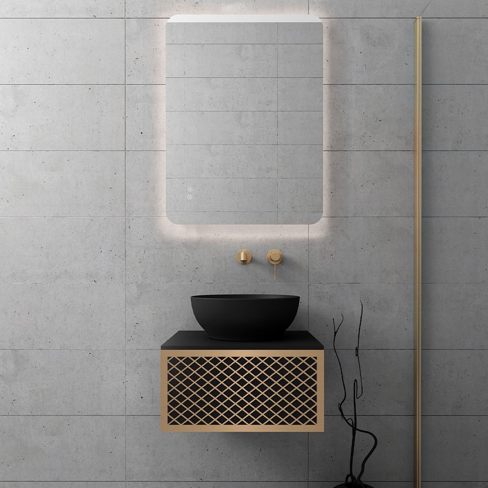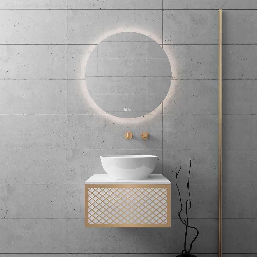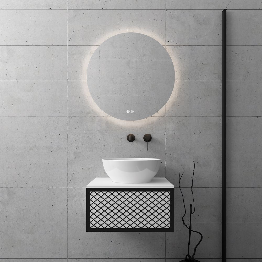 Υλικό επίπλου MDF super matt, anti-spot, για μεγαλύτερη αντοχή στο χρόνο. Ανακλινόμενο πορτάκι με χρωμέ κουμπάσο, δύο μεντεσέδες (χρωμέ ή μαύροι ανάλογα με το χρώμα της βάσης) και μηχανισμό ανοίγματος push. Ο πάγκος κατασκευάζεται από υλικά ματ υψηλής αντοχής στην κρούση, στην κάμψη και στην τριβή με σχεδόν μηδενική απορρόφηση υγρασίας. Προτείνεται η επιλογή καθρέπτη LED με κρυφό φωτισμό και 2 κουμπιά με αισθητήρες αφής on/off και anti-fog αντιθαμβωτικό σύστημα με δυνατότητα επιλογής θερμοκρασίας χρώματος φωτός. Στην τιμή δεν συμπεριλαμβάνεται ο νιπτήρας, η μπαταρία και η βαλβίδα του νιπτήρα. Mπορείτε να προσθέσετε επικαθήμενο νιπτήρα και ορειχάλκινη βαλβίδα κλικ-κλακ για νιπτήρες χωρίς υπερχείλιση. Ομοίως μπορείτε να προσθέσετε μπαταρία νιπτήρος που φέρει την υπογραφή κορυφαίων εταιρειών στον σχεδιασμό ειδών υγιεινής, όπως Pentagono, Orabella by Armando Vicario και Orabella. Προσοχή: οι επικαλύψεις παραδίδονται ατρύπητες.