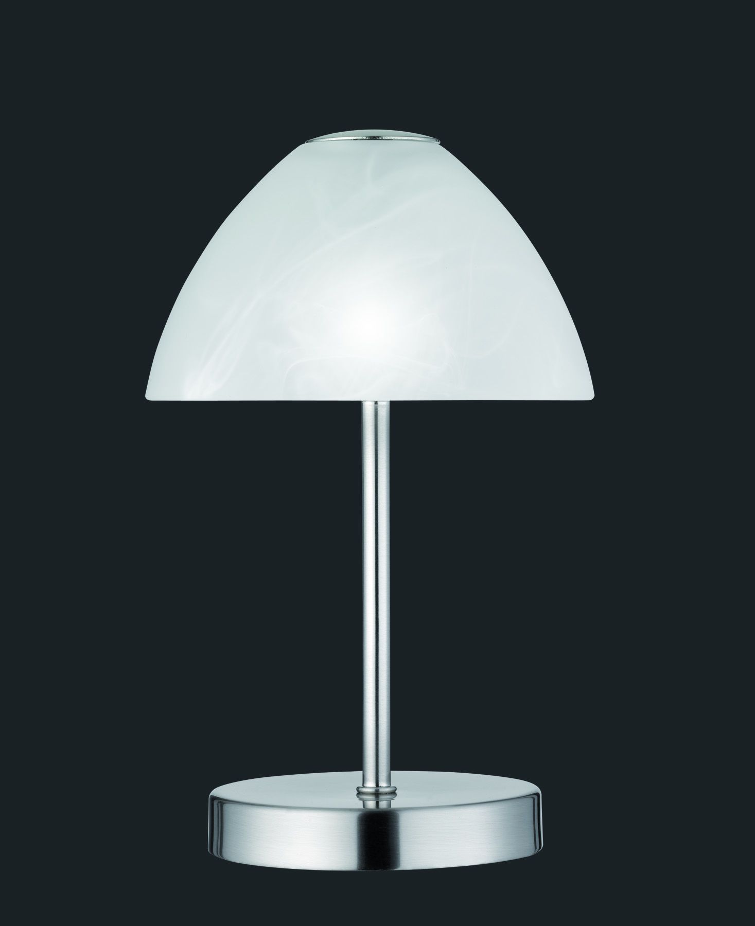 The QUEEN table lamp impresses with its simple elegance and timeless look. The integrated 4-way touch dimmer allows the brightness to be adjusted in stages and is controlled using the button on the base. Thanks to its simple design, the lamp can be easily integrated into various furnishing styles and is suitable as a supplementary light next to the sofa, as a lamp on the bedside table next to the bed or on the chest of drawers. The table lamp has a height of 24 cm and a diameter of 15 cm. The luminaire in matt nickel is combined with a glass in alabaster-coloured white, which emits a uniform light. In addition, the luminaire features modern LED technology, which is characterised by high light quality and energy efficiency. Compared to conventional halogen lamps, up to 80% of energy costs can be saved. In addition, LED light sources have a long service life, produce less heat and protect the environment.