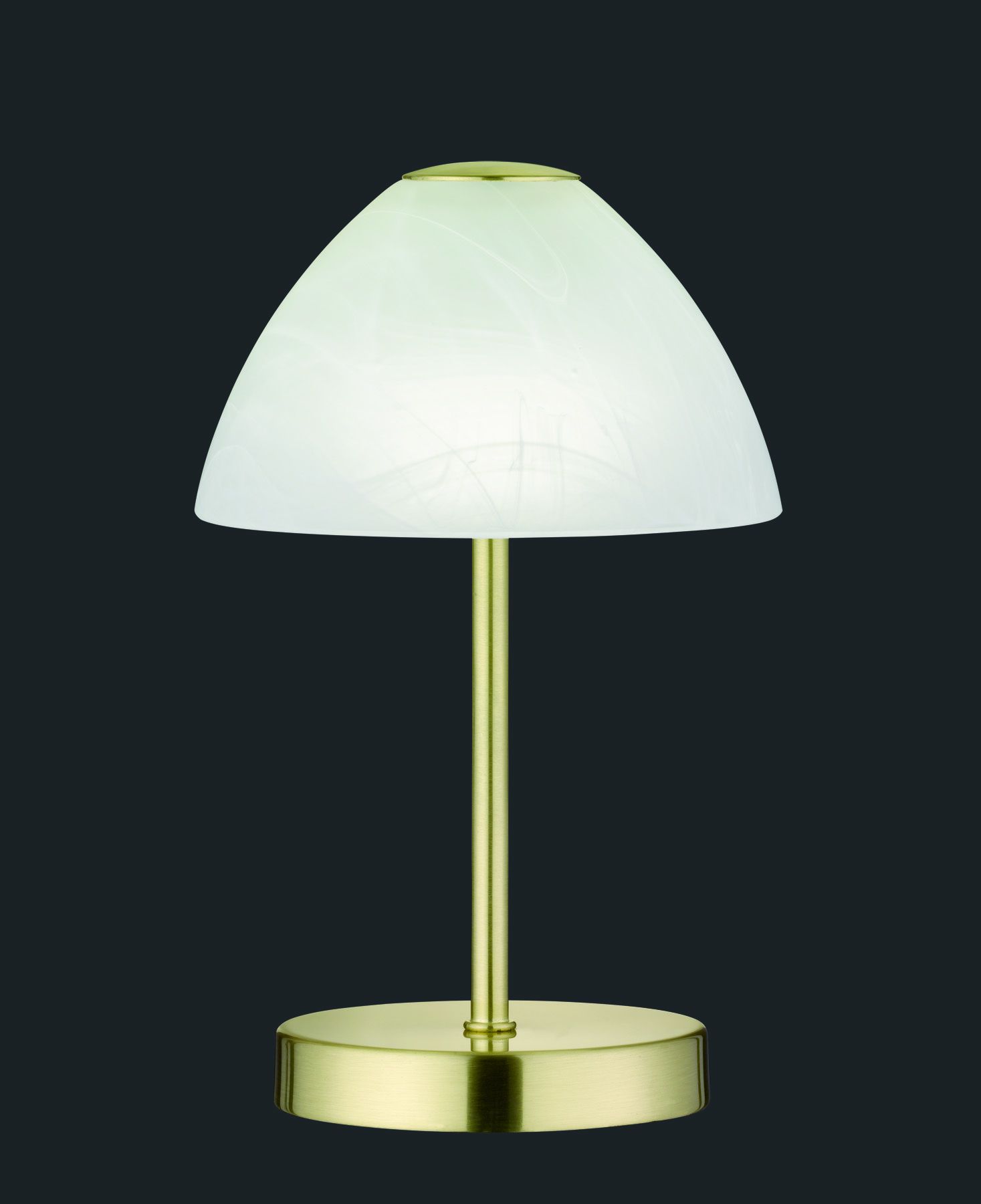 The QUEEN table lamp impresses with its simple elegance and timeless look. The integrated 4-way touch dimmer allows the brightness to be adjusted in stages and is controlled using the button on the base. Thanks to its simple design, the lamp can be easily integrated into various furnishing styles and is suitable as a supplementary light next to the sofa, as a lamp on the bedside table next to the bed or on the chest of drawers. The table lamp has a height of 24 cm and a diameter of 15 cm. The luminaire in matt brass is combined with a glass in alabaster-coloured white, which emits a uniform light. In addition, the luminaire features modern LED technology, which is characterised by high light quality and energy efficiency. Compared to conventional halogen lamps, up to 80% of energy costs can be saved. In addition, LED light sources have a long service life, produce less heat and protect the environment.