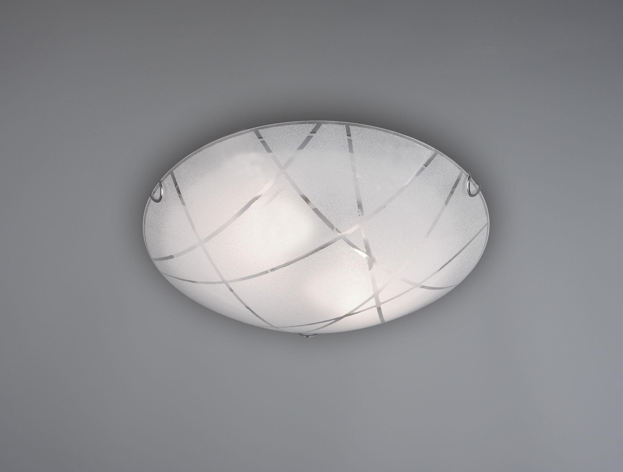 The SANDRINA ceiling light impresses with its classic and timeless glass design. The round glass shade with crystal effect filters the light harmoniously and fills your living space with a pleasant lighting atmosphere. With a diameter of 40 cm, the luminaire blends in perfectly with its surroundings and can therefore be used in almost any living room or bedroom, from classic to modern. The white colour scheme complements the style and envelops your living space in an idyllic ambience. For energy-saving lighting, it is recommended to use an LED illuminant. These are an optimal alternative to conventional halogen lamps and stand for a high quality of light and energy savings of up to 80%. In addition, LED lamps help you benefit from a long service life, low heat generation and at the same time protect the environment.