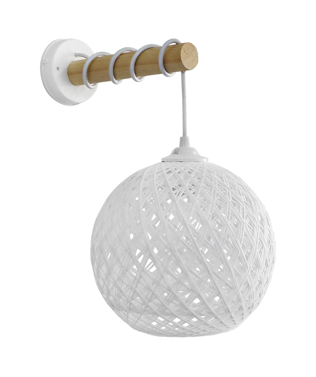 Απλίκα τοίχου SILK-01/ΑΡ STICK WHITE Φ20 ΑΠΛΙΚΑ ΞΥΛΟ Τεχνικά χαρακτηριστικά βάση πλαστική με ξύλο φυσικό και λευκή μπάλα σχοινί Χρώμα λευκό με φυσικό ξύλο Η37 x 30 x Φ20 cm E/27 max 10W LED