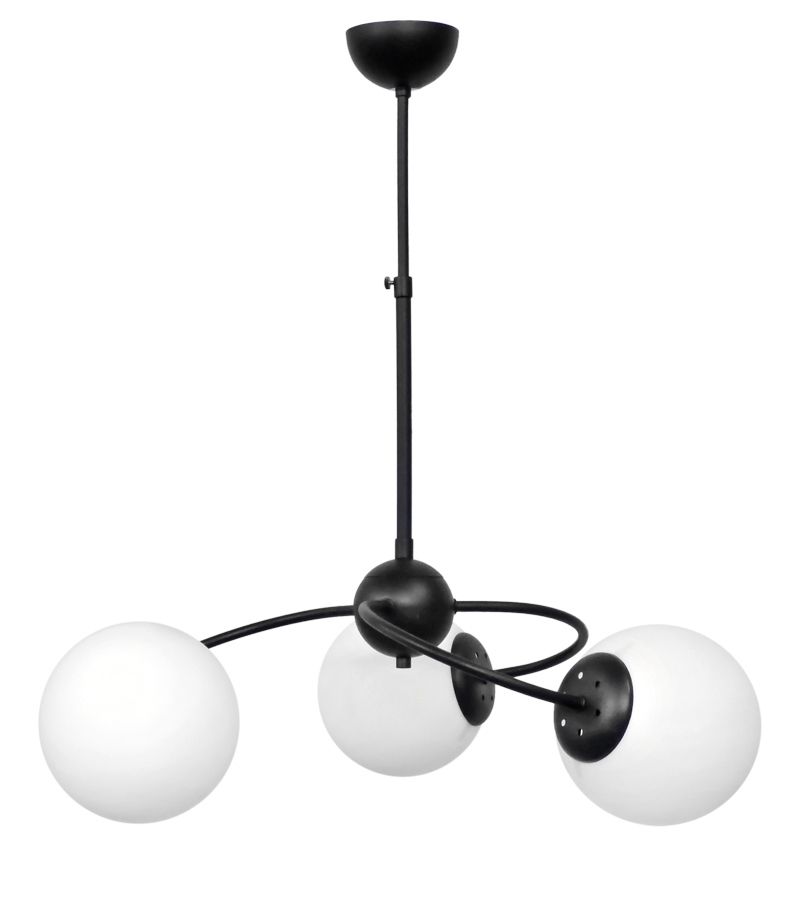 Φωτιστικό 3φωτο μεταλλικό ,με γυάλινες μπάλες λευκές TOP / 3L BLACK Τεχνικά χαρακτηριστικά σκελετός μεταλλικός / μπάλες γυάλινες Χρώμα μαύρο με λευκό Η65 x Φ45cm 3 x E/27 LED