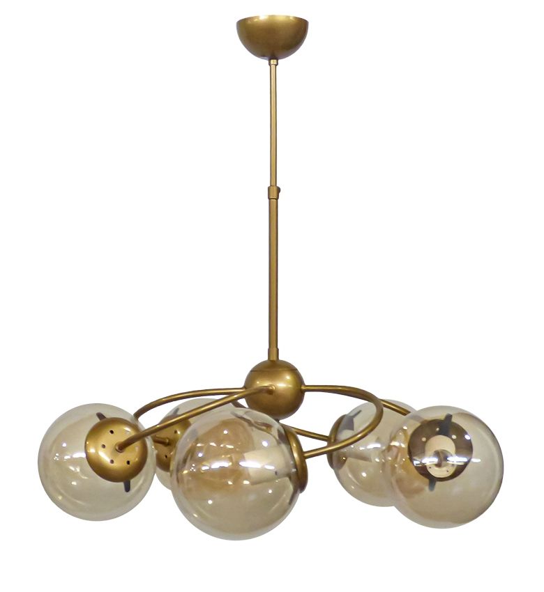Φωτιστικό 5φωτο μεταλλικό ,με γυάλινες μπάλες μελί TOP / 5L GOLD MAT - MELI Τεχνικά χαρακτηριστικά σκελετός μεταλλικός / μπάλες γυάλινες Χρώμα χρυσό ματ με μελι Η65 x Φ45cm 5 x E/27 LED
